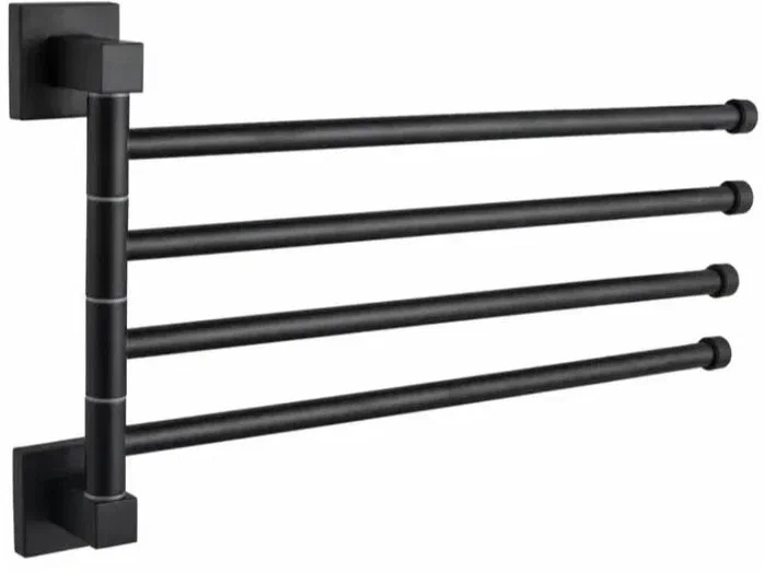 Держатели для полотенец предназначены для размещения полотенец именно там, где нужно. В современных ванных комнатах полотенцедержатель выполняет роль не только функционального, но и декоративного элемента. Стильный, правильно подобранный по дизайну полотенцедержатель способен сделать интерьер ванной комнаты завершенным и гармоничным. Универсальный дизайн держателя для полотенец фирмы D-Lin позволяет дополнить практически любой интерьер. Надежность конструкции, профессиональное крепление и прочность покрытия позволяют использовать изделие не только в домашних условиях, но и в общественных местах, включая отели. Крепежные элементы скрыты под декоративными заглушками, что позволяет аксессуару выглядеть более эстетично. Модель имеет подвижные держатели, которые можно повернуть в нужную сторону. Технические характеристики Длина - 38 см Способ монтажа - На два отверстия, Настенные Цвет - Черный Материал - Латунь Стиль - Современный Назначение - Для полотенец Форма держателя - Прямая Количество держателей - 4 шт Подвижные держатели.
