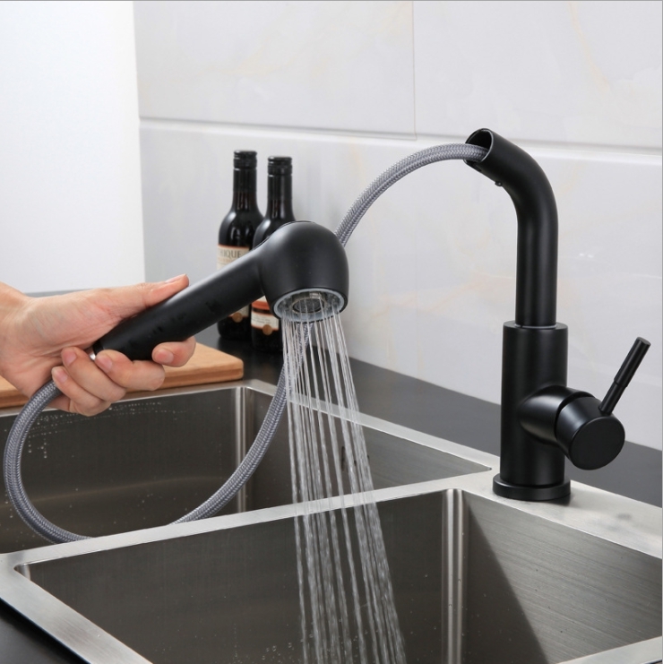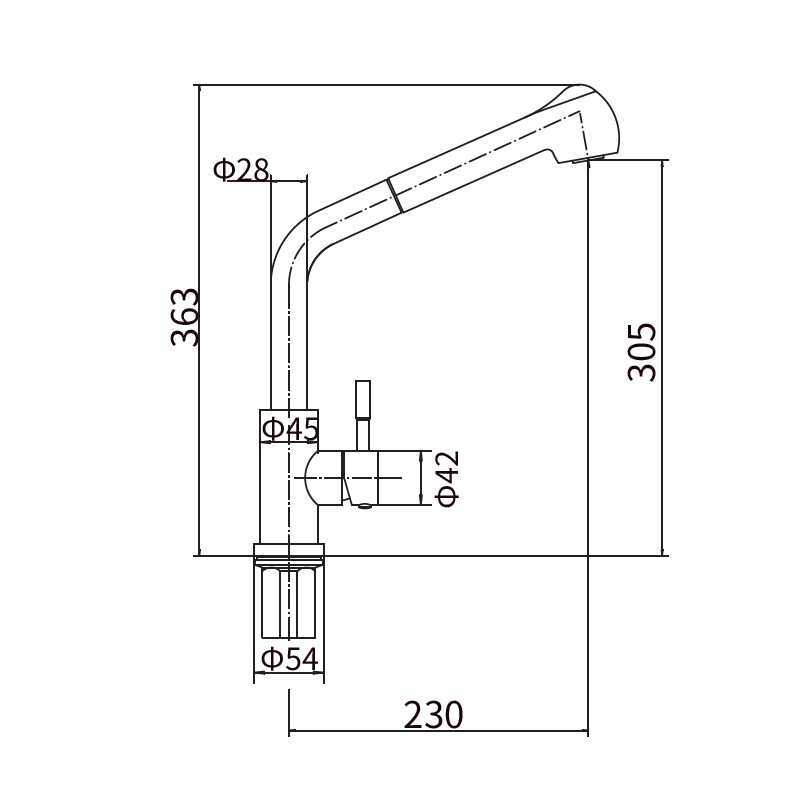 смеситель для кухни с выдвижной лейкой, H=363 мм