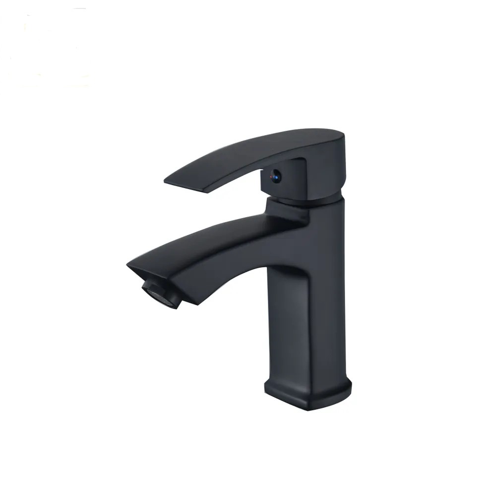 Смеситель для раковины D-LIN D110366-A с гайкой, монолитный излив с аэратором, цвет: черный.