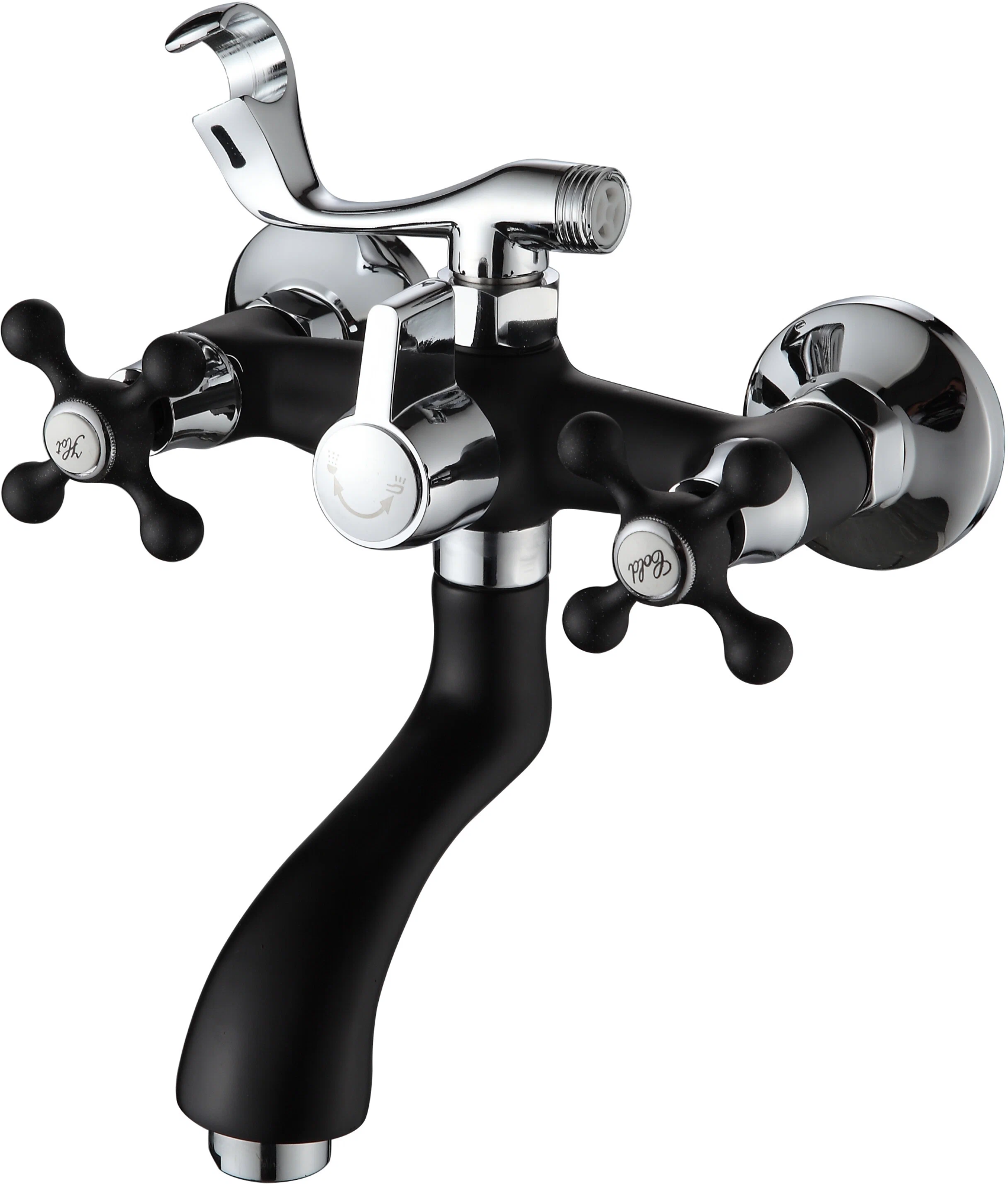 —Смеситель для ванны двухвентильный Ammore короткий излив хром/чёрный A3081-A